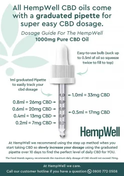 Our Pure CBD oils are packaged in graduated bottles, giving you complete control over your CBD dosage, whether that be several CBD-infused teas throughout the day, a full dose as you wake up, or anywhere in between! At HempWell we can give you guidance on finding the most effective way to enjoy your CBD, but ultimately the choice is yours. You can even bake our oils into a tasty treat! Just make sure to cook them at a low temperature to avoid deactivating the CBD.