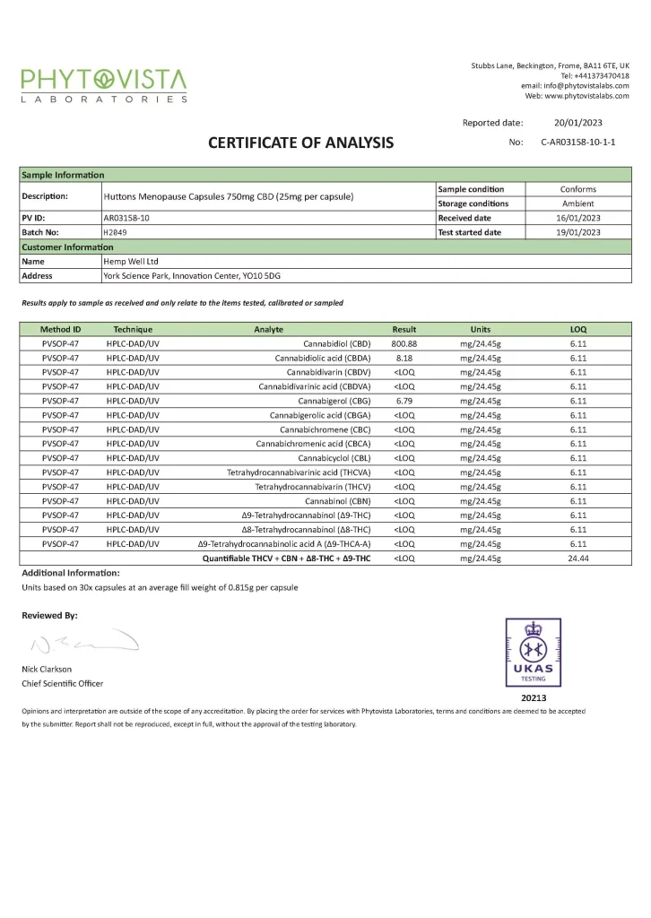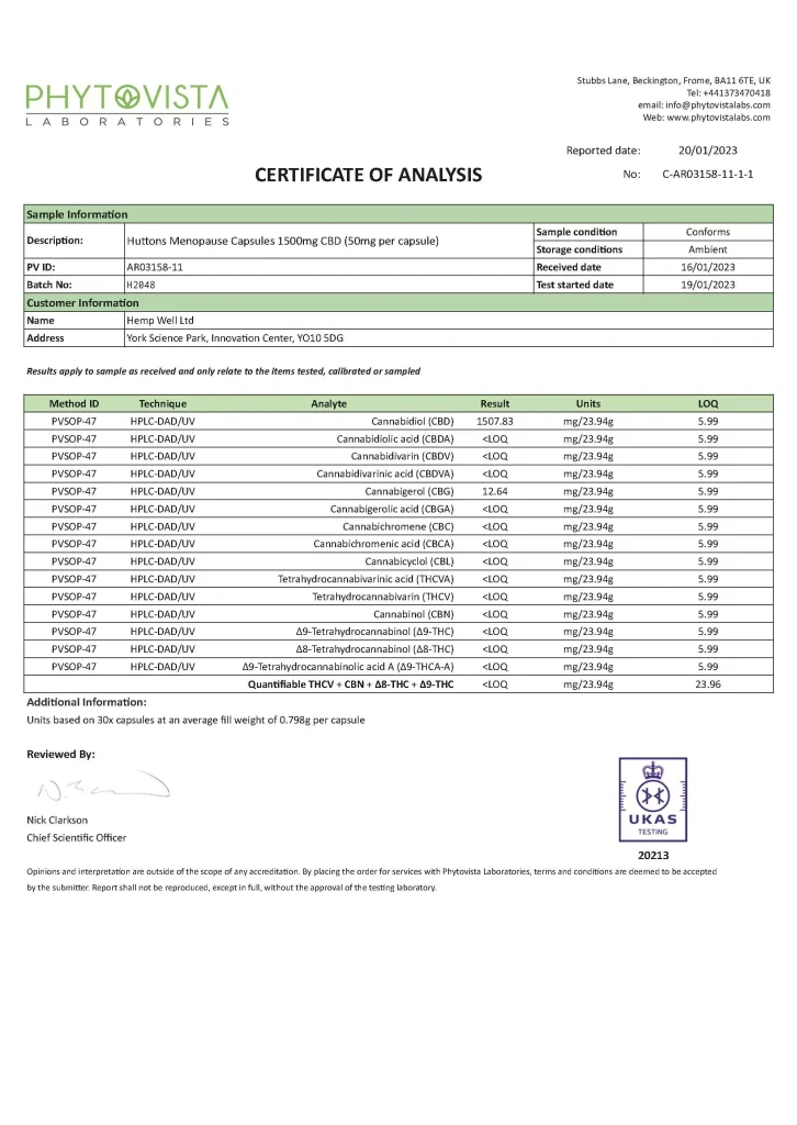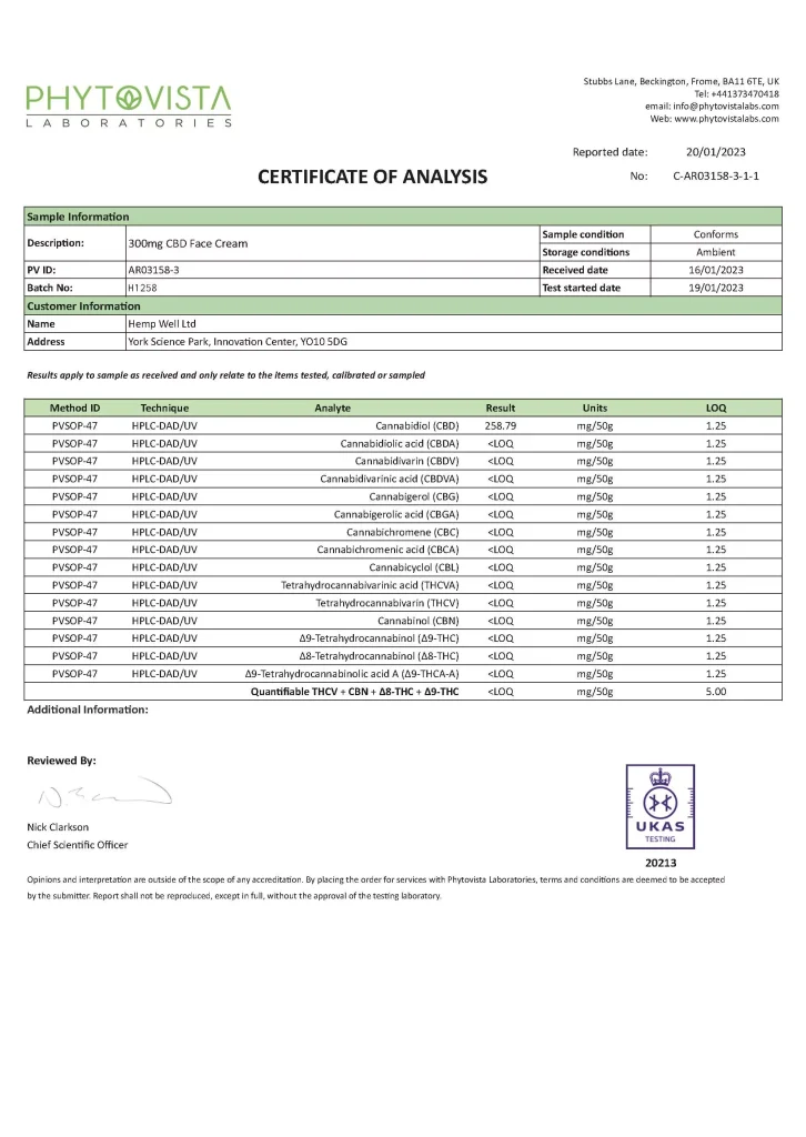 Below you can see the latest reports on our products tests. We typically test one product from each batch produced so the products are associated with an internal batch number. We use a number of different laboratories to test our products including Adact Medical, Eurofins and Phytovista. Our typical test will check for the different cannabinoids content in the product and we are primarily concerned with the levels of CBD and we work with a 10% margin of error. To see the test results click on the test title and click again to close the test results..